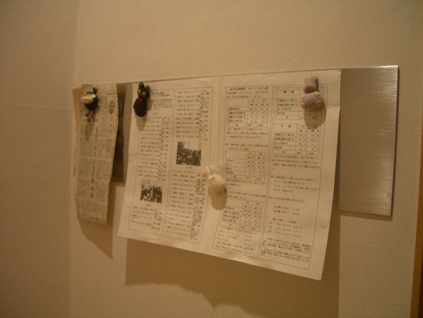 我が家はトイレでプリント類に目を通す習慣があります。どうしても読まなければならないものでないこのような書類は、ともすれば食卓まわりで何かに紛れてしまうことしばしば。子どもがガッコウから持ち帰ったら即トイレの掲示板へ。