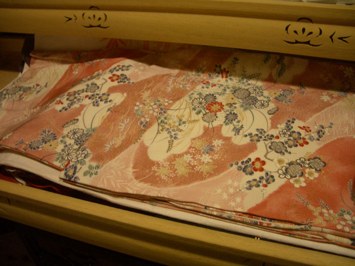 箪笥の肥やしの代表格と言えば、和服(キモノ)ですね。すばらしい日本の民族衣装なのに、肥やしではもったいないですね。決まりごとが多くて、着つけが面倒というのが敬遠される理由でしょう。ごもっともです。歳を重ねたせいでしょうか、ワタシの中に流れる日本人の血が、古典的なものへと向かわせるのであります。母が持たせてくれたキモノ、じゃんじゃん着て元を取りますよ。飾りなんかじゃイヤ!ってキモノも言っています。