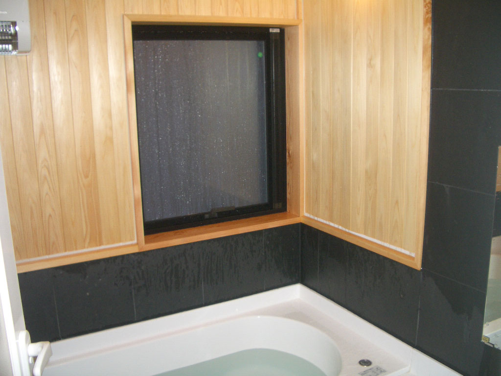 ヒノキの芳香漂う気持ちのよいバスタイムを愉しんでいたが、数日前ムスメたちが天井に異様なふくらみを発見。ヒノキが湿気を帯びて許容範囲を超える膨張を起こし、天井板がはじけそうになる症状を呈した。