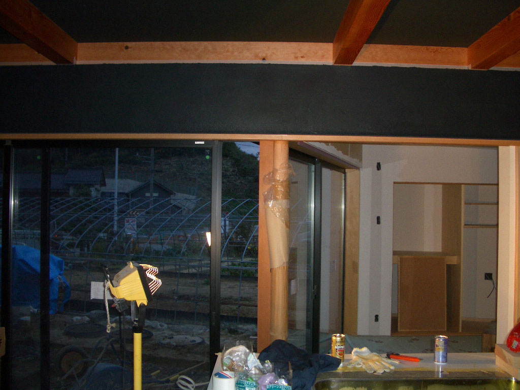 デッキ(まだついていない)からダイニングを見る↓