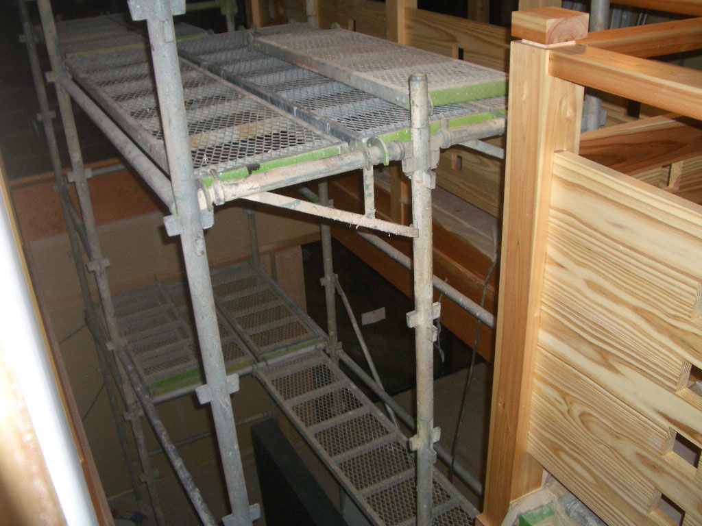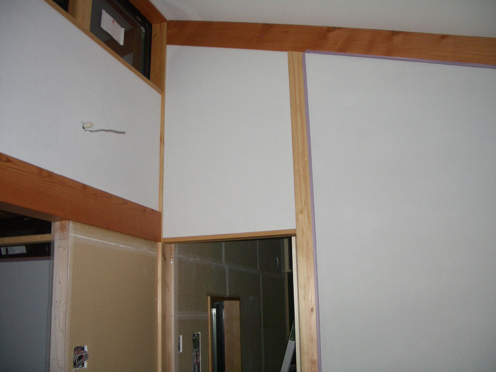 いい意味で職人さんは昔気質。そんな職人の血は、大壁を塗り壁で仕上げるという発想に対して理解に苦しんだ模様。1階は大壁構造のため、一気に壁を塗ってしまう必要がある。途中でつなぐとつなぎ目が目立つらしい。困った!素人では、ムズカシイ。やはりここはひとつオトウサマを拝み倒してお願いするほかなさそうだ。