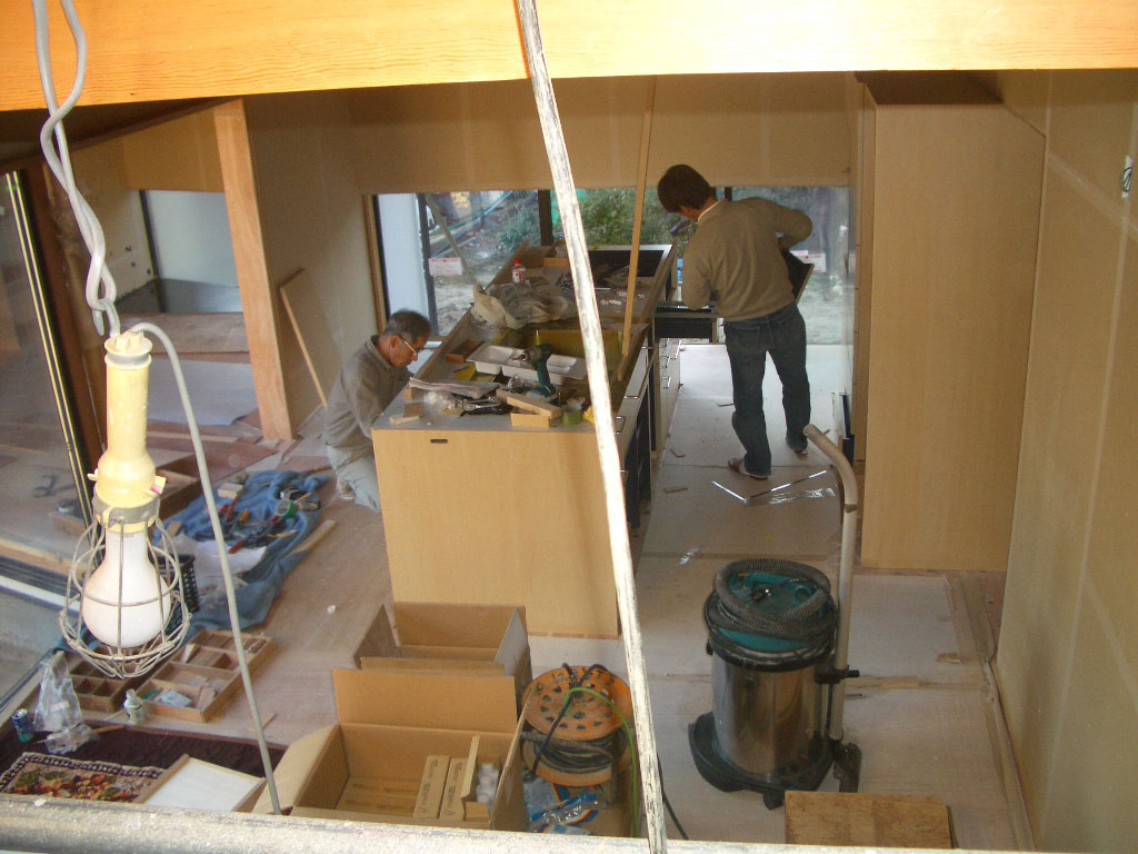 家具職人さん、ただ今取り付け中。