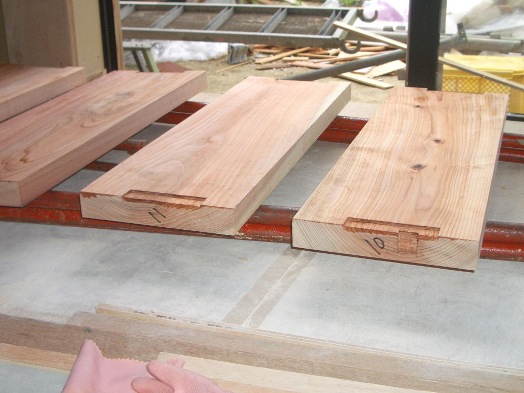 玄関収納です。昨日ワックスを塗った杉板はムラがはっきりと確認できました。2度塗りで修正しま~す。