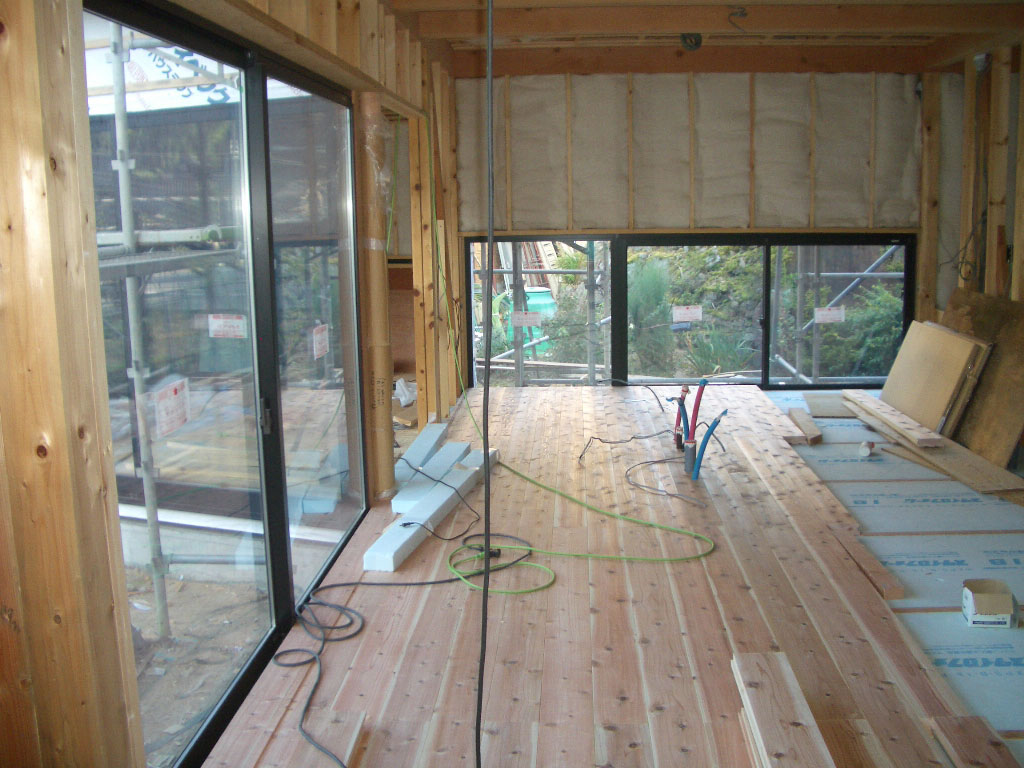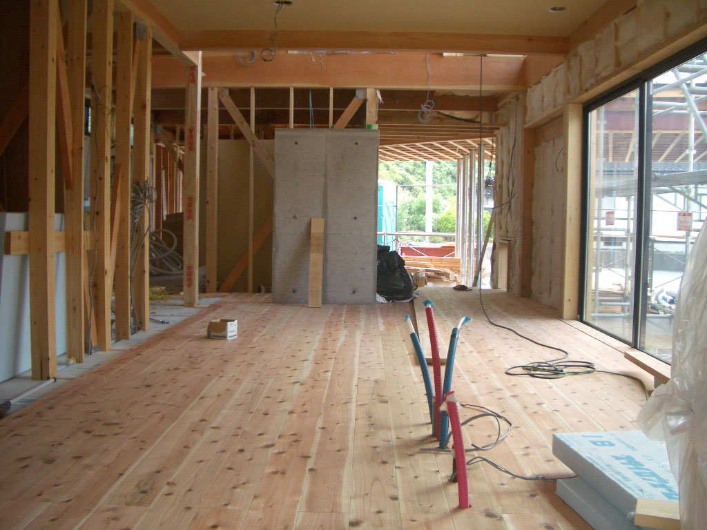 ーブの耐熱壁。さらにその向こう側が玄関です。