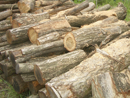 ごろごろ山と積まれた原木。